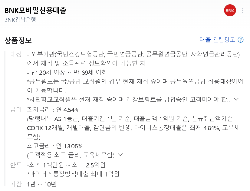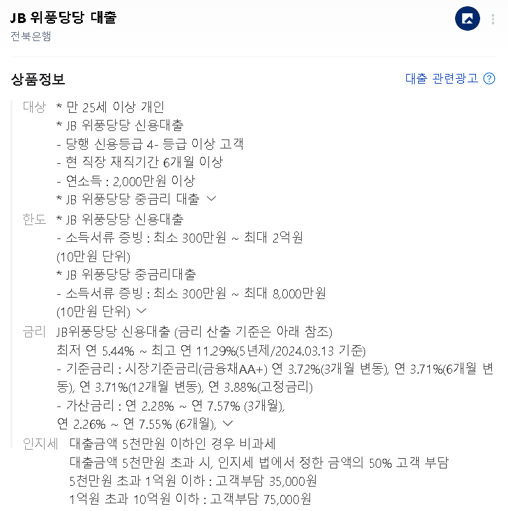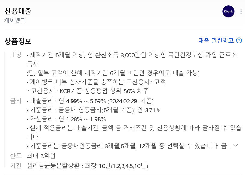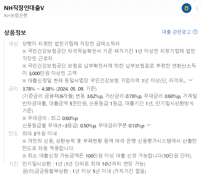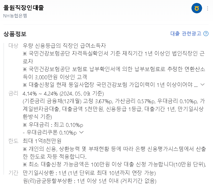 대상: 재직기간 1년 이상, 연소득 3천만원 이상