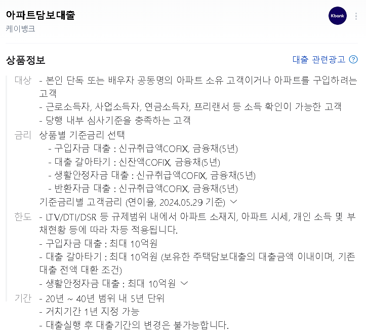 상품: 아파트담보대출