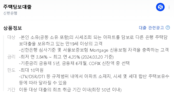상품: 주택담보대출
