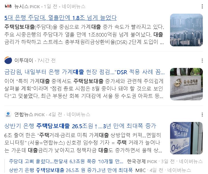 5대 은행의 주택담보대출이 3년만에 최대폭으로 증가를 했습니다. 그만큼 주택담보대출의 수요가 많이 늘어났다는 증거인데 최근 금리가 조금 내려간 여파도 있지 않을까 예상을 해봅니다.